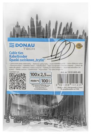 Kábelkötegelő, gyorskötöző, 2,5x100mm, DONAU "Tech", fekete